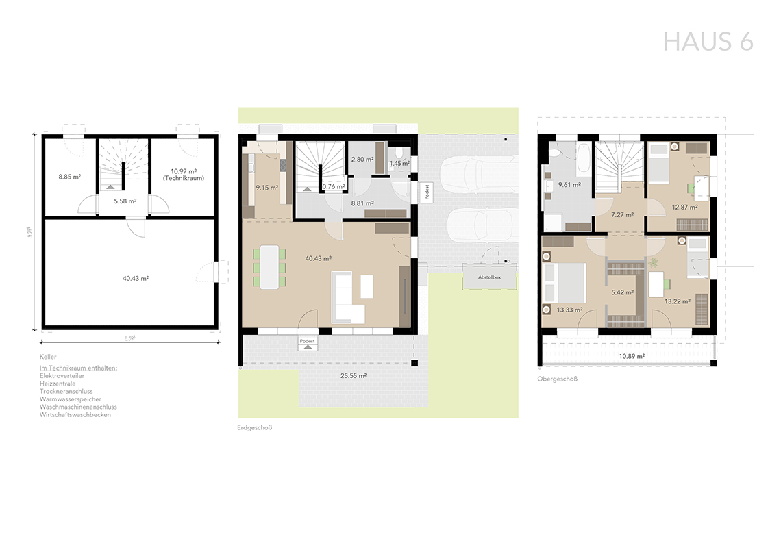 Die Grundstücke (153 – 468 m²) werden von uns voll aufgeschlossen und beinhalten: Wasserversorgung, Strom, Heizung, Abwasserbeseitigung und die Verkehrserschließung.
